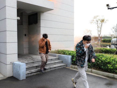 社区居民在物业工作人员和志愿者的引导下,用湿毛巾捂住口鼻,弯腰低姿,沿着预定疏散路线,快速、有序地从楼内撤离至指定安全集结区。